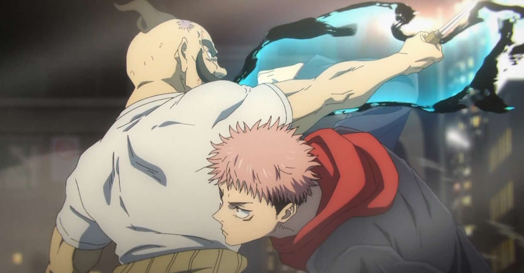 しかし、“帳”の基のうち2本は呪詛師の粟坂二良に持ち去られていました。虎杖は粟坂をワイヤーで搦めるとビルの屋上から地上へと落とします。一方、オガミ婆ともう一人の呪詛師と対峙した猪野は、降霊術「来訪瑞獣(らいほうずいじゅう)」を使って一気に二人を倒そうとします。