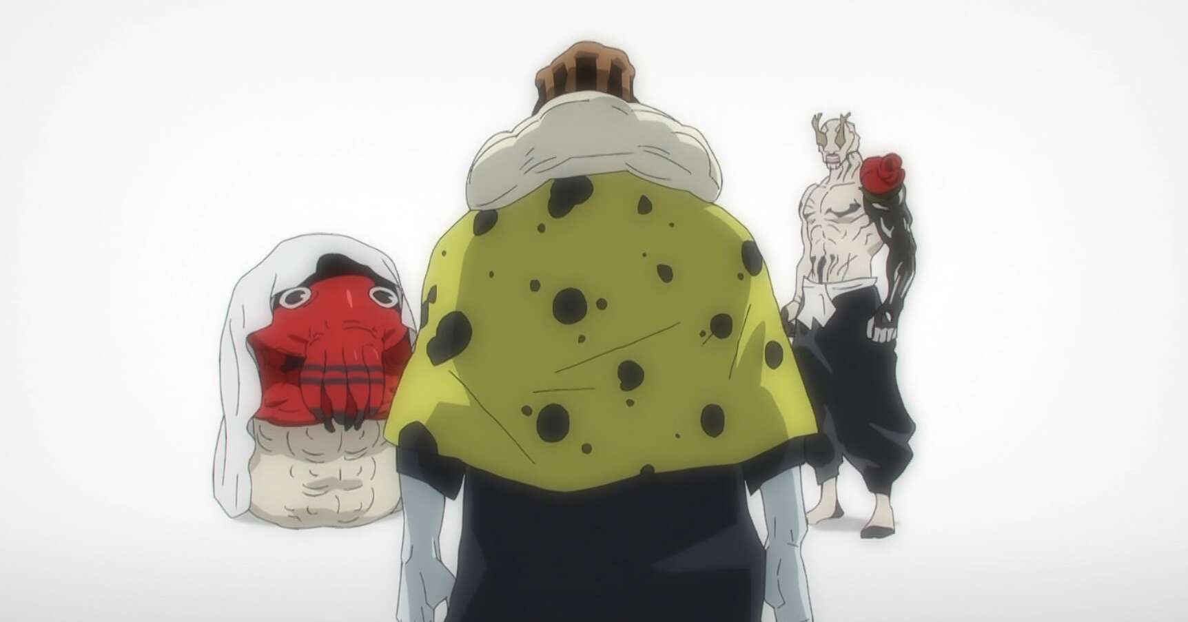 その時、宿儺が現れ漏瑚が真の人間を目指していると知り、下らないと漏瑚を切り捨てますが、漏瑚との戦いは多少楽しめた、と漏瑚を称賛します。宿儺に称賛された漏瑚の目からは、自然と涙がこぼれ落ちます。さらに戦いが終わった宿儺の所に裏梅という呪詛師?が現れ、重面に襲われた伏黒は瀕死の重傷を負い意識がない状態です。そして、重面は何かに焦っていますが、何に焦っているのかはここでは不明です。