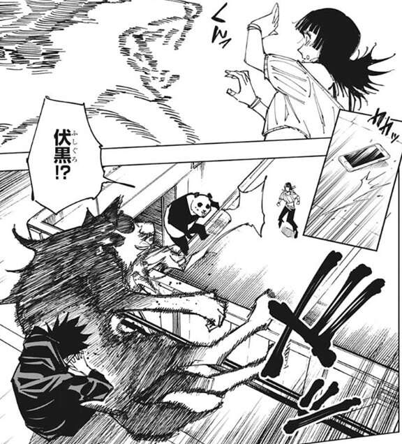 しかし、玉犬が星綺羅羅に接触する直前、玉犬が伏黒の方に吹っ飛ばされたような形で伏黒と衝突します。伏黒はパンダの話を思い出し、玉犬は吹っ飛ばされたのではなく、星綺羅羅の術式のせいで近づけなかったのだと推測します。