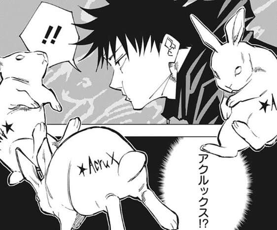 脱兎を呼び出した伏黒は、脱兎に「AcruX、アクルックス」と書かれている事に気付きます。さらに、モニタールームの扉には「GacruX、ガクルックス」とも書かれていて、伏黒は星綺羅羅の術式の正体を推測しようとします。