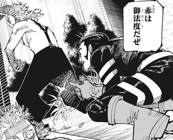髙羽の戦いっぷりに、……髙羽が敵じゃなくてよかったよ、と伏黒はつぶやくと、一度は言われてみたいセリFUUU(フゥーーー)!!と、髙羽は叫びながら蹴り飛ばした黄櫨の方に走っていきます。