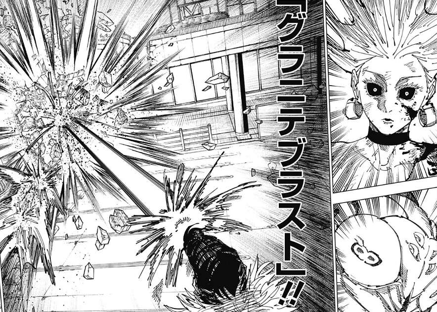 烏鷺は自分の腕を奪われて許せないのか、藤原ァ!!!!と、叫んでいますが、そこに石流がグラニテブラストを烏鷺に放ちます。石流も領域展開直後で術式が焼き切れて使用できないはずですが、石流は術式を使用してもしなくても同等の攻撃が可能な唯一の術師だったようで、グラニテブラストを使用することが可能だったようです。