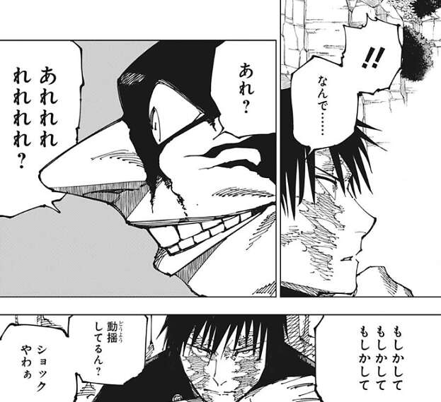 場面は桜島結界(コロニー)に戻り、真希は芋虫呪霊状態の直哉を見ながら、呪力の無い私が拳で殺したんだ、こうなることを想定しておくべきだった……!!と、思いツメが甘かったと後悔します。しかし、自分を殺したのは真希の母親だと直哉が言うと、真希は動揺します。