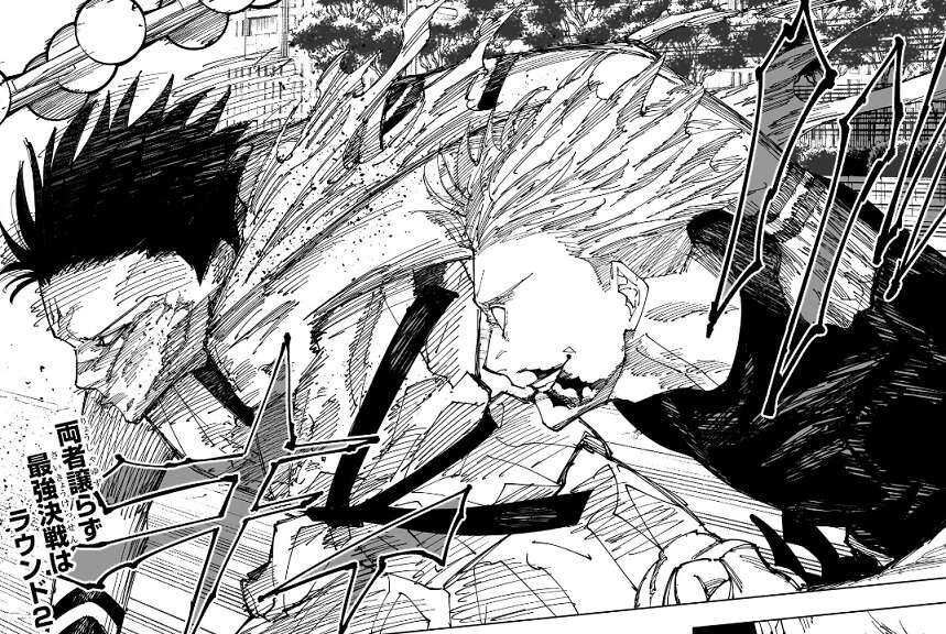 前回の記事はこちらです。五条と宿儺は、再び同時に領域を展開し領域内で殴り合いをします。