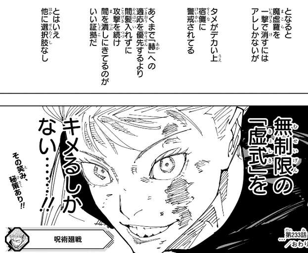 週刊少年ジャンプに掲載されている、呪術廻戦 第233話のネタバレ、感想です。