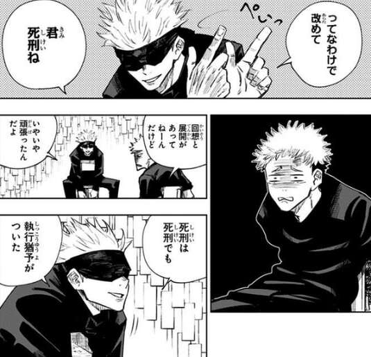 自ら両面宿儺の指を飲み込んだ虎杖は、宿儺の力で呪霊を撃退します。さらに虎杖は宿儺の力を制御できており、呪術師の五条悟はその事実に驚きます。しかし、宿儺を飲み込んだ虎杖には秘匿死刑が決定しますが、五条が上と交渉した結果執行猶予が付き、全ての宿儺を見つけ出し取り込むまで処刑の猶予が与えられることになります。