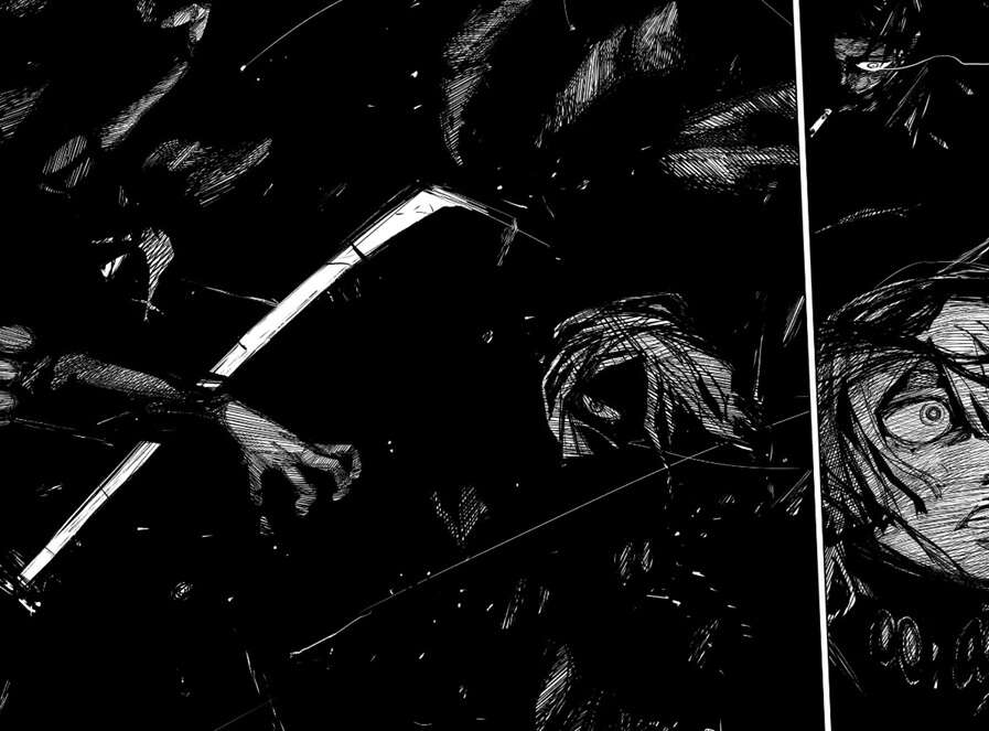 第53話では、演劇の劇場にチヒロを誘い込んだ昼彦は、観客を盾にしながらチヒロを攻撃します。さらにチヒロに観客を殺されて、チヒロに悪側(こっち)である事を実感してもらい、二人きりで殺し合いをしようと昼彦は考えますが、チヒロは観客には犠牲を出さないよう淵天を使う事を途中で止めます。そして、昼彦の鶴の攻撃を誘って全身ボロボロになりながら昼彦の攻撃を受けると、大量の黒い金魚によって空間を満たして昼彦の視界を奪ったようです。何が起こっているか分からない昼彦の腕を淵天で斬って、チヒロは一気に昼彦を追い詰めて形勢は逆転します。