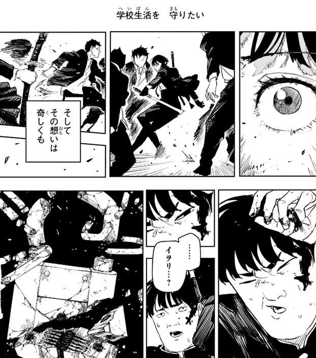 その先ではチヒロと昼彦が戦っていましたが、井倉はチヒロにイヲリを助けに来たと伝えます。チヒロは井倉に、自分が危ない目に合うと…、と忠告しようとしますが、井倉はチヒロの忠告を遮り自分の覚悟を叫びます。