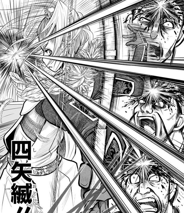 川周辺の敵を片付け川に陣取った顕家軍ですが、上杉憲顕が仕掛けた硫黄によるガス攻撃によって、川に陣取った顕家軍の兵は中毒症状を発症します。この硫黄によるガス攻撃は斯波家長の作戦で顕家軍は水場を押さえることが出来なくなり、兵糧にも余裕がない顕家軍は山城と化した杉本寺を正面階段から力攻めで突破するしかなくなります。顕家は冷静な斯波家長が時行だけには利根川で動揺を見せたと言い、時行にまたも先鋒を任せ斯波家長の動揺を誘おうとします。