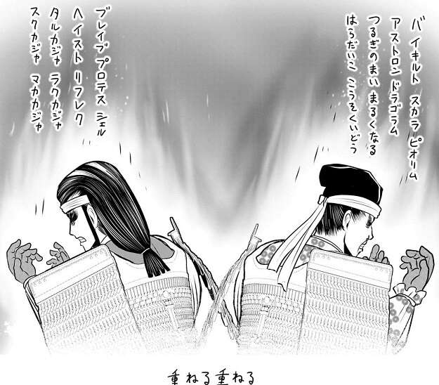 第76話で一騎打ちをした渋川と海野ですがお互い自己強化するタイプで、ゲームだとこんな感じになるのでしょう。バフを重ねて、重ねて自己強化しまくっています。