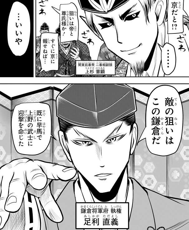 鎌倉に進軍する北条軍を迎撃するのが関東庇番衆ですが、渋川以外揃いも揃って奇人変人ばかりです。岩松は無類の女好きですし、石塔は鎧に萌え絵を描くような強者です。また9巻では戦場に出てきませんが、馬好きの今川範満も見た目からしてかなりヤバそうです。北条時行と北条軍が関東庇番衆をどのように戦って打ち破るか、注目です。