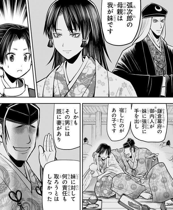 怒りで手が付けられない渋川相手に力押しでは難しいとみた諏訪頼重は、全軍に一旦退却を指示し、北条軍は武蔵国 女影原まで後退します。軍を後退している途中、弧次郎の複雑な出自を聞いた北条時行は、何としてでも弧次郎の力になろうとします。そして、逃若党全員でこの大戦で楽しみながら成長しよう、と北条時行は全員に言います。