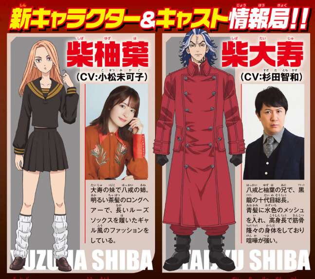 2022年10月31日に、TVアニメ『東京リベンジャーズ』聖夜決戦編のPVが公開となりました。また少年マガジン 2022年49号で、新キャラクターのキャスト情報として、柴柚葉と柴大寿の声優情報が判明しました。柴柚葉を小松未可子さんが、柴大寿を杉田智和さんが担当すると掲載されています。