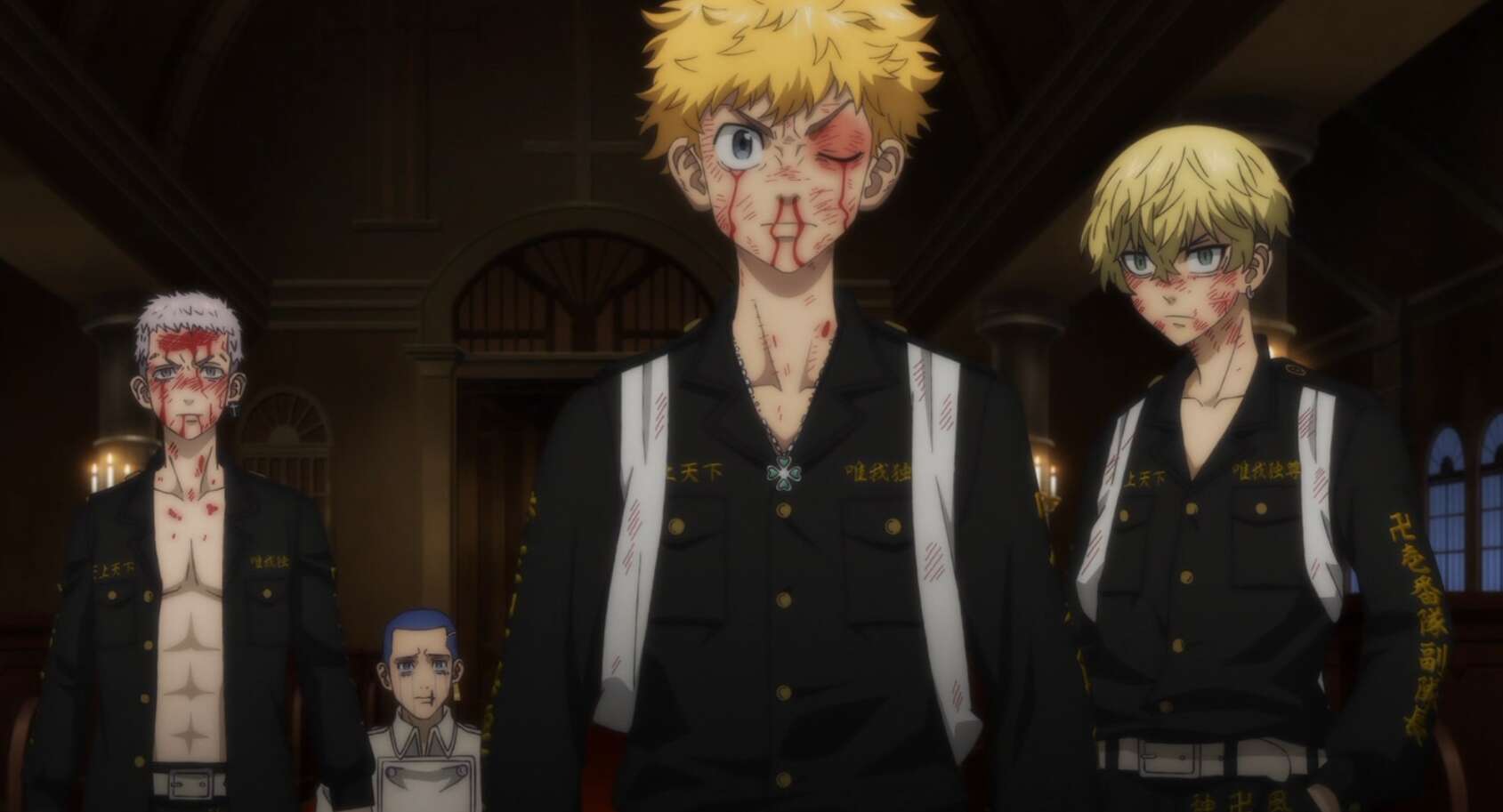 大寿の前に八戒は一度はやられてしまい、さらに教会の外には黒龍の精鋭100人が建物を囲んでいて武道達は絶体絶命の状況に陥ります。それでも武道や八戒、三ツ谷、千冬は諦めずに大寿、イヌピー、ココに立ち向かい、柚葉を守ろうとします。