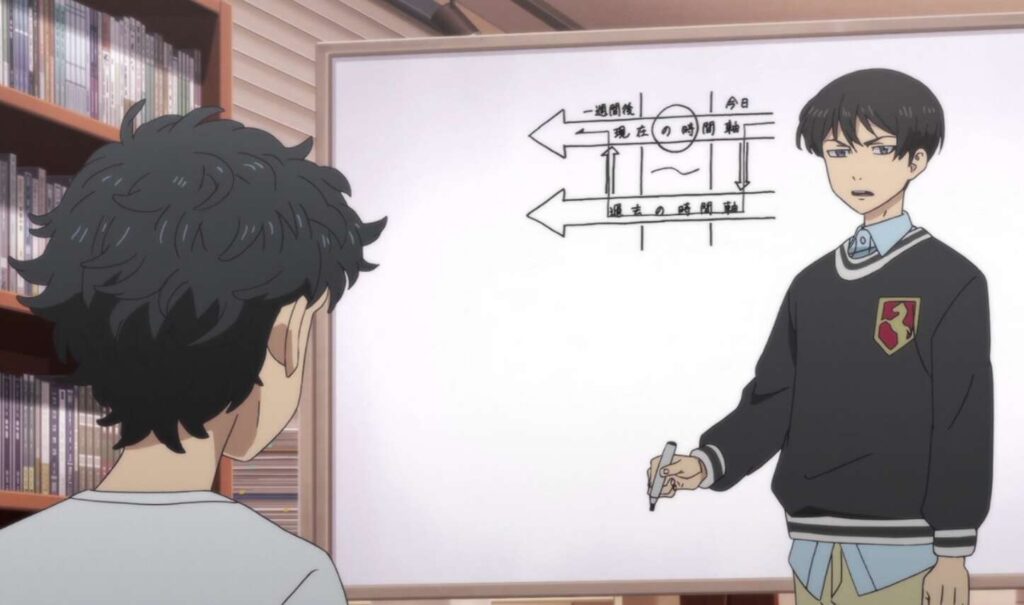 千堂敦と二人で話したいと誘われた武道は、千堂敦を信じて二人で屋上に行き話をします。屋上で武道は千堂敦から、線路に武道を突き落としたのは自分だと告白されます。そして、ナオトに助けられた武道を目撃し、あらかじめ線路に落ちることを知っているように見えたと言い、過去に戻れるんじゃないかと武道に詰め寄ります。