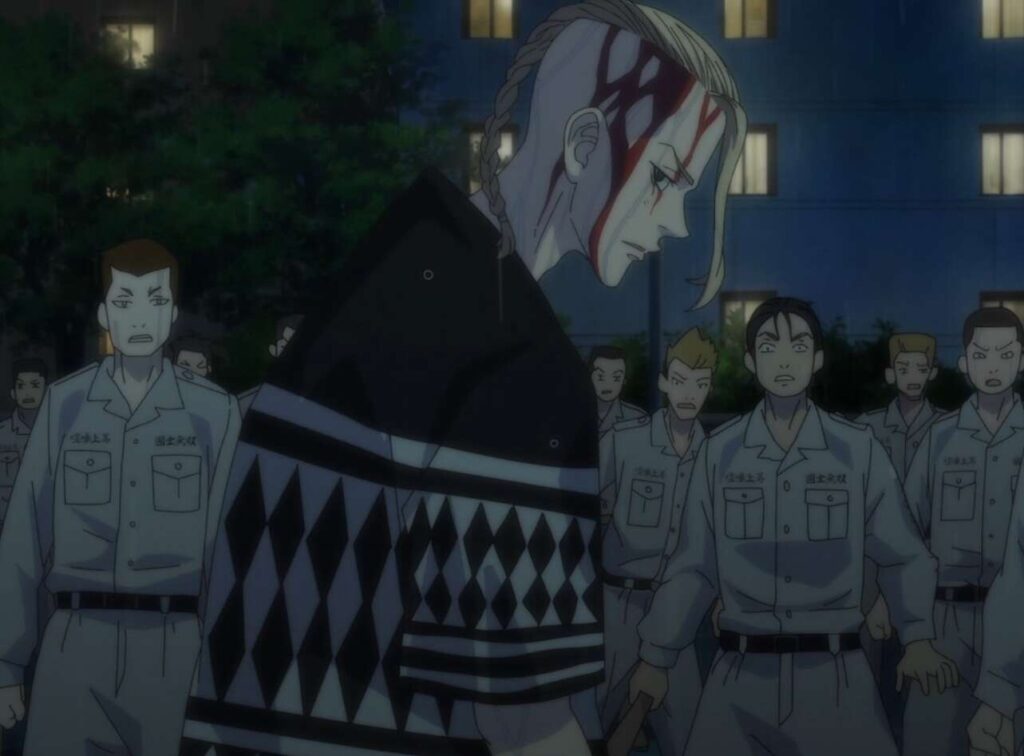 半間と名乗る男は、自分は愛美愛主を仮で仕切っていると言い、マイキーと対峙します。半間修二は“東卍潰し”が目的だと言い、愛美愛主 総勢100人でマイキー達4人をボコろうとします。