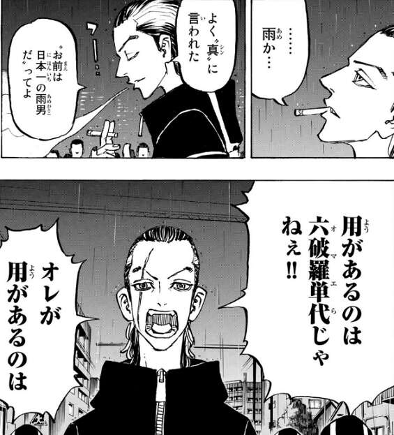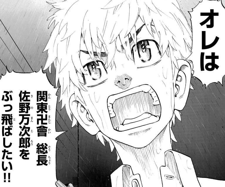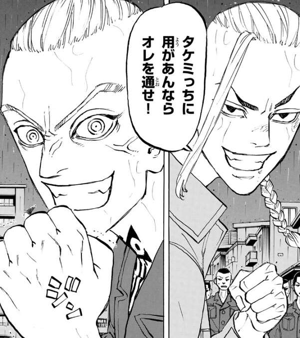 六波羅単代と梵(ブラフマン)が一瞬触発の状態でにらみ合っている時、武道は六波羅単代と梵(ブラフマン)の前で、関東卍會 総長・佐野万次郎をぶっ飛ばしたい!!と、宣言します。