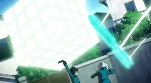 生駒が旋空弧月を使おうとした時、ヒュースはエスクードを使って生駒を宙に飛ばし、その隙に包囲網を抜けようとします。