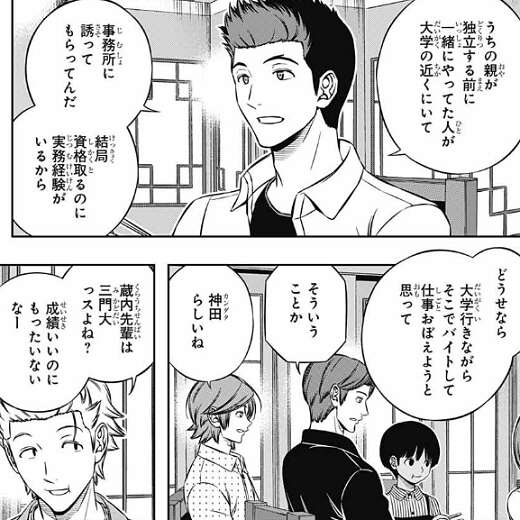 神田の進学先は九州で、三門近辺でも建築系に強い学校はあるようですが、九州の大学の近くには神田の親の知り合いの事務所があり、そこから誘いがあったからのようです。神田は大学に行きながら、そこでバイトをして仕事を覚えるつもりのようです。