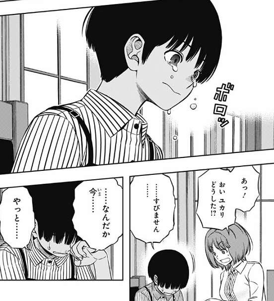 神田からも、帯島はこっからどんどん強くなるさ、と言われると、帯島は試合中に空閑にも、おびしまちゃんは強くなるよ、おれが保証する、と言われた事を思い出し、思わず泣き出してしまいます。やっと、負けて悔しいと思えてきて、涙があふれて来たようです。