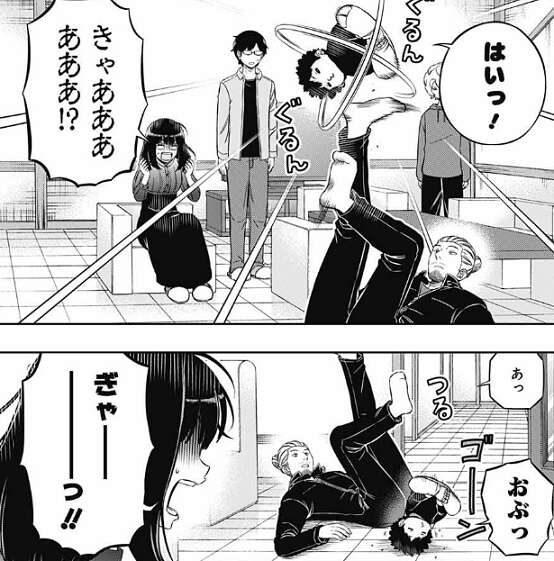 そんな話をしていると、別の部屋から林太郎の声が聞こえて、行ってみるとミカエル・クローニンがしていたように、瑠花は陽太郎を足で回転させて遊んでいます。三雲と空閑が様子を見に来ると、瑠花は陽太郎が遊びたいって言うから……!と言い訳を2人にしてきます。