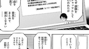 小一時間、黙々と課題に取り組み、見るからに香取の集中力が途切れてきますが、その頃に諏訪のノートパソコンに特別課題①の通知が来ます。特別課題①を共有に入れて、諏訪は全員にその事を教えます。皆が特別課題①のファイルを開きますが、これが『特別課題』?といった反応を香取が示します。