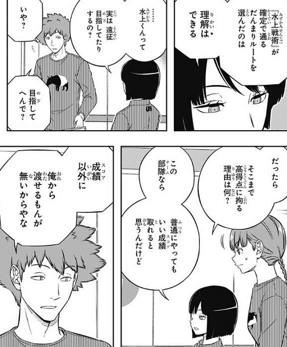 前回の記事はこちらです。古寺6番隊と諏訪7番隊はネタ共有を行い、三雲は自分の考えが正しいか、古寺に尋ねます。