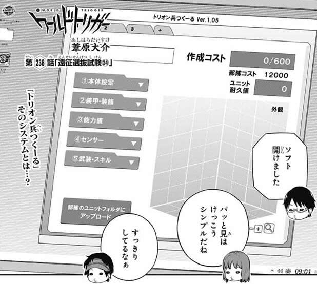 238話では、特別課題その④のトリオン兵の作成を各チームが開始します。