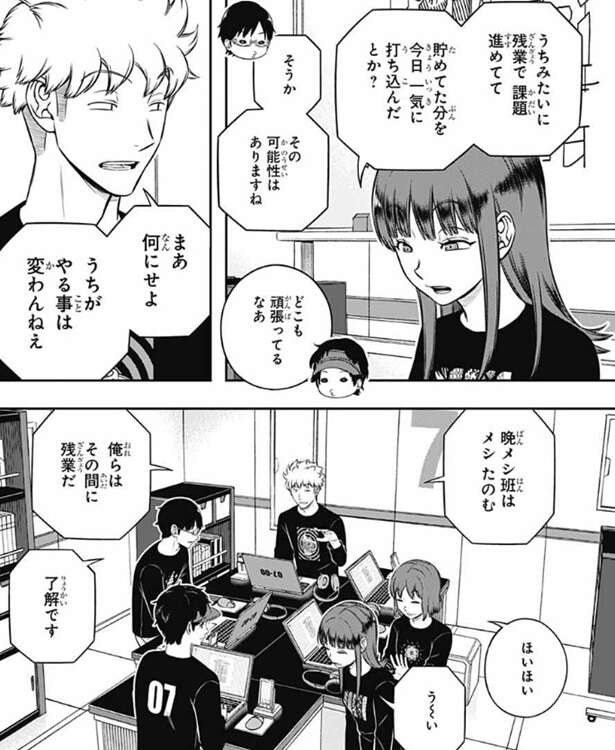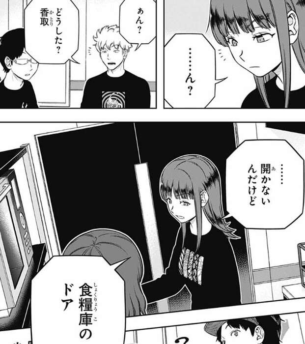そして、諏訪隊は残業に取り組もうとしますが、突如食料庫のドアが開かない事態が発生します。鬼怒田が言っていた最後の『特別課題』が出てこなかったので、これが特別課題の可能性があります。もし本当にこれが特別課題なら、どういう意図の課題なのか気になります。このまま晩メシ抜きという事態になるのでしょうか…?